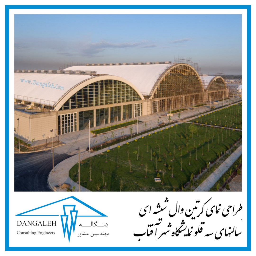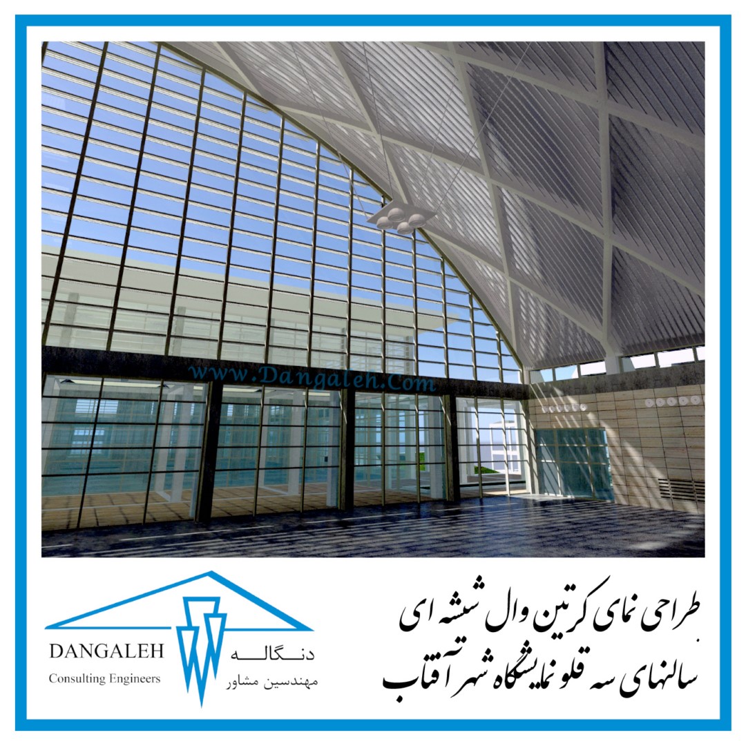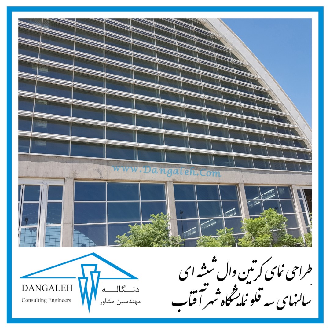 طراحی نمای کرتین وال شیشه ای سالنهای سه قلو نمایشگاه شهر آفتاب