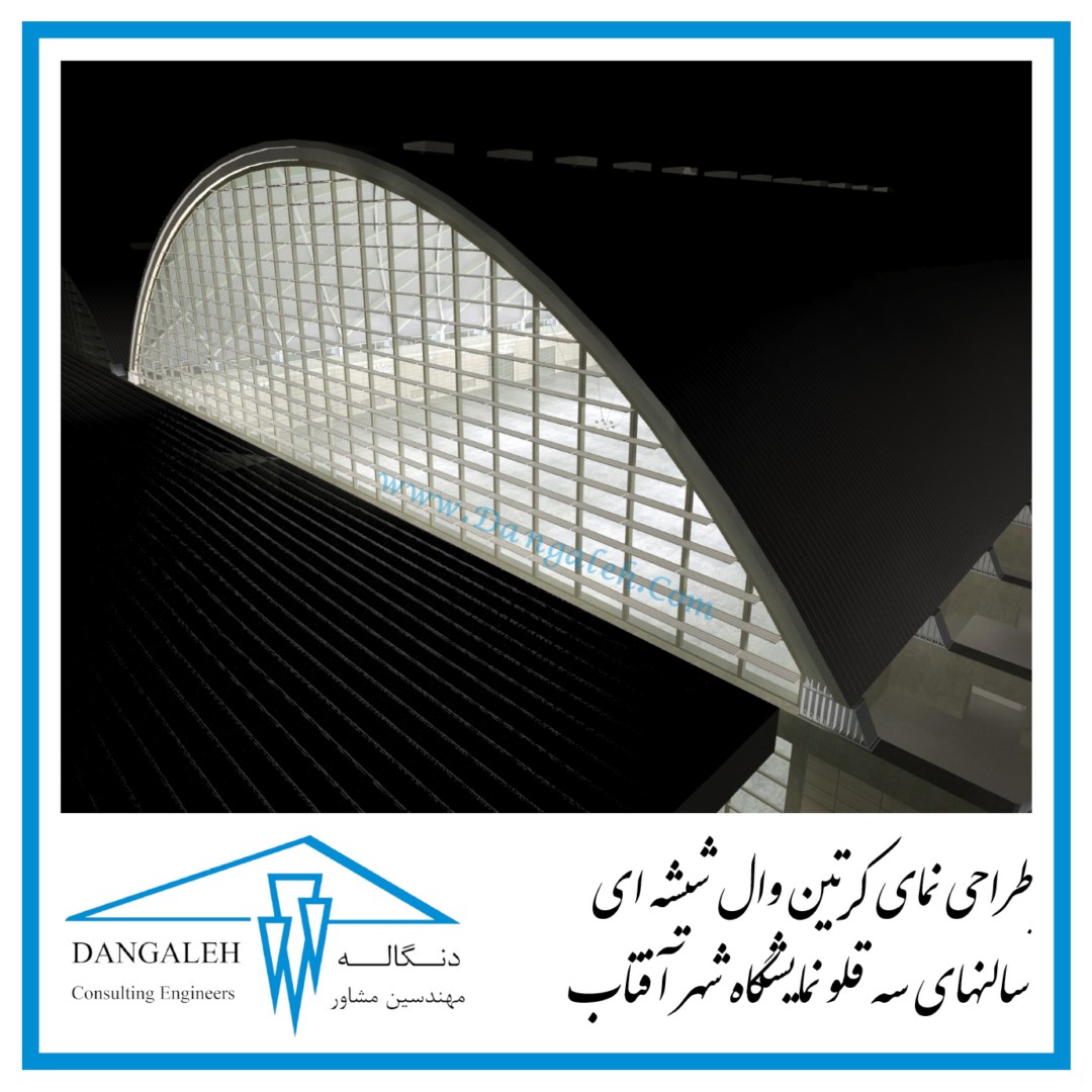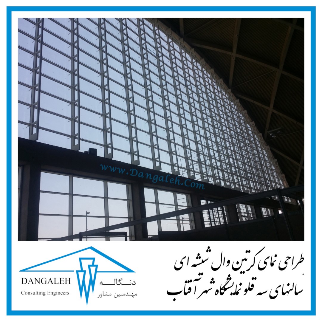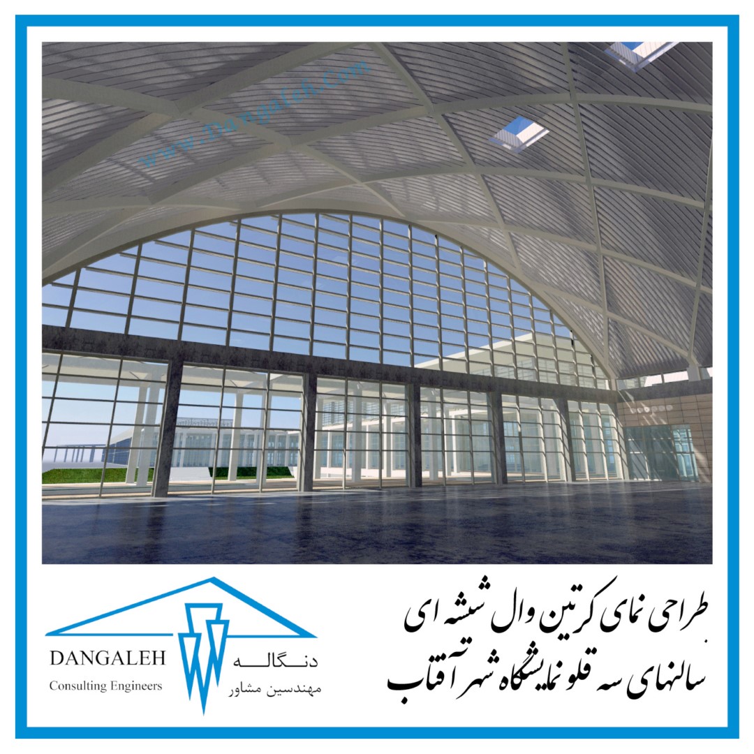 طراحی نمای کرتین وال شیشه ای سالنهای سه قلو نمایشگاه شهر آفتاب